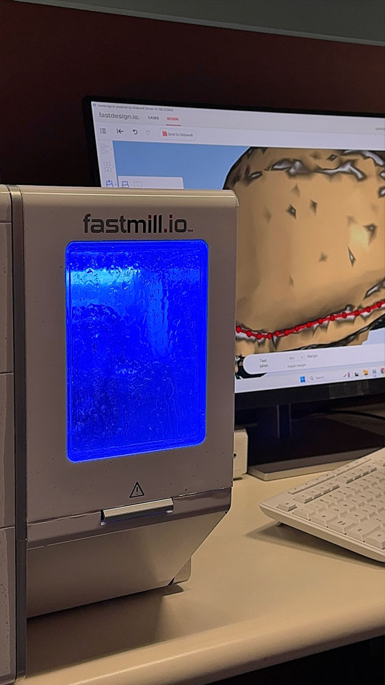 - Our in-office system designs the crown virtually, adjusting for optimal fit.