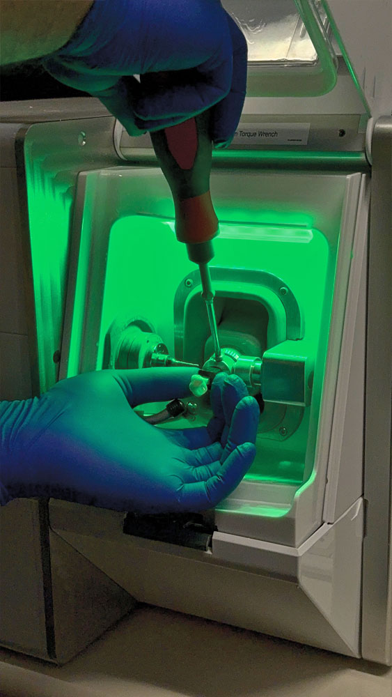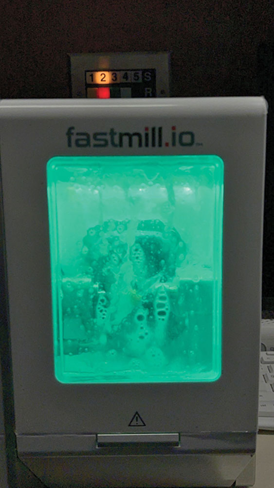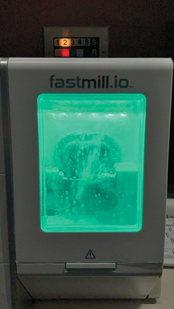 - The machine mills the crown from a block of ceramic, with excellent precision.